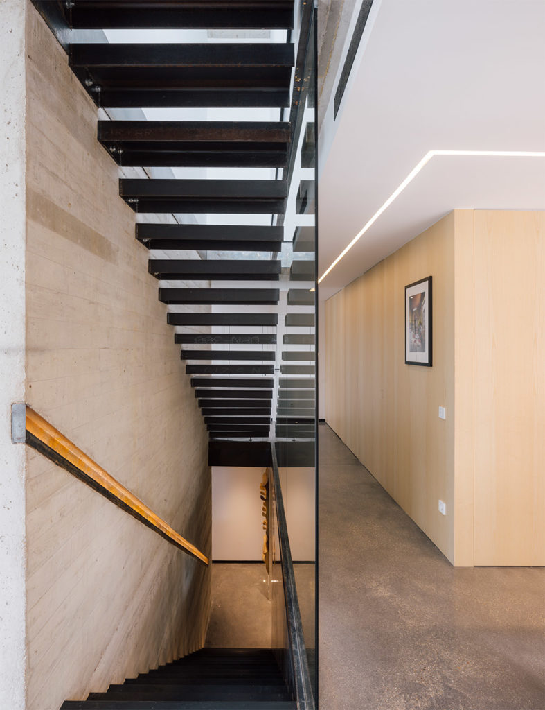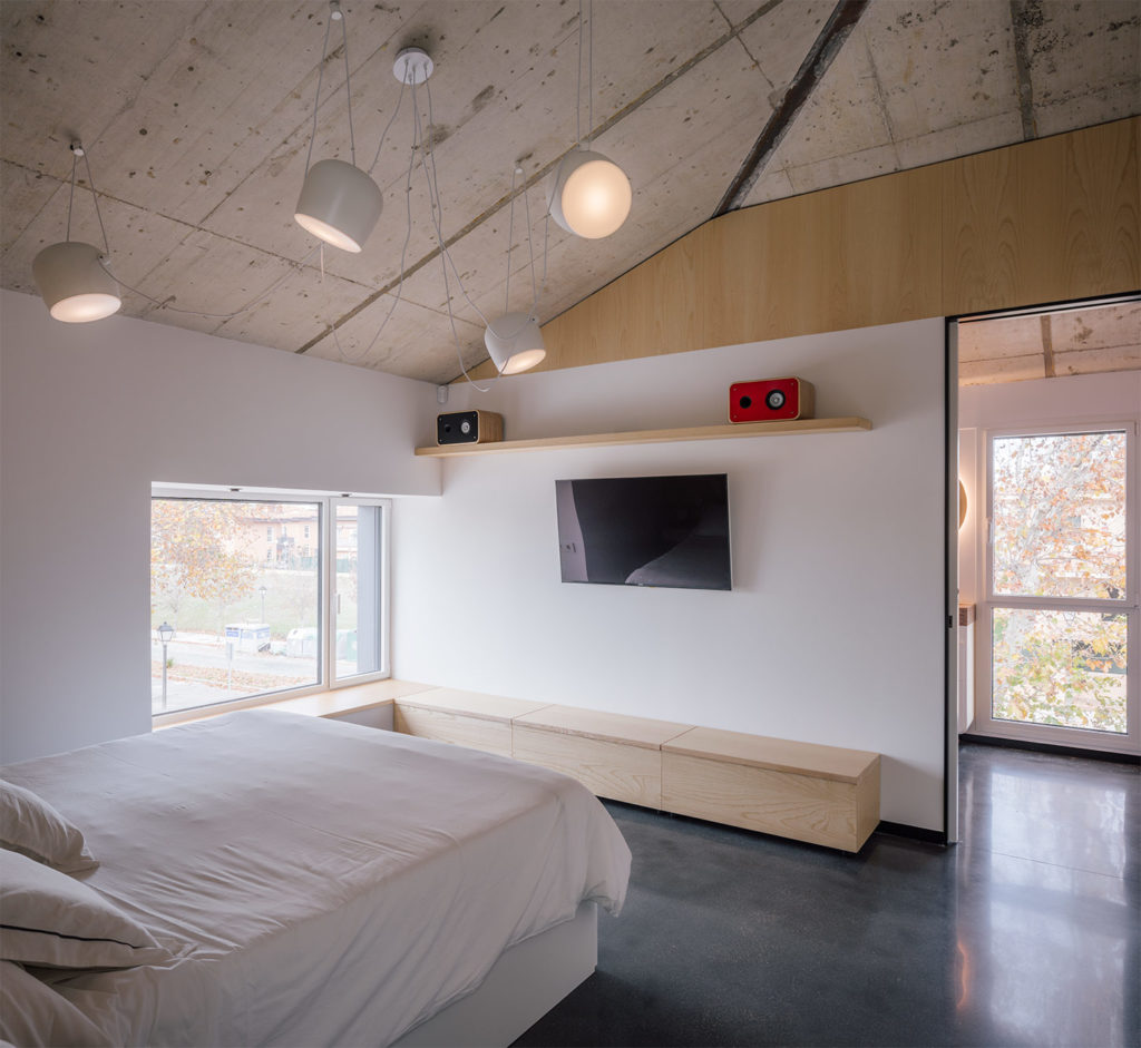 Another of the unique elements designed in this house is a skylight over the stairwell that runs uninterrupted along part of the roof and the east facade, and therefore bathes the space in natural light.