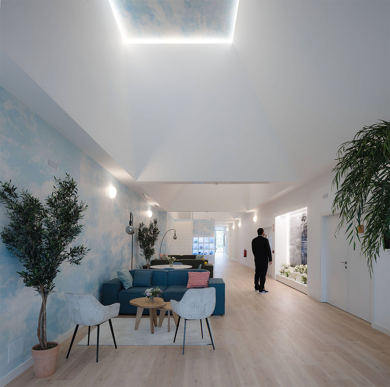 Una de las primeras premisas del proyecto fue el transformar este edificio plenamente industrial en un lugar en el que evadirse de este contexto frenético y dinámico para encontrar un espacio de encuentro y compañía. La nave posibilitaba un trabajo en planta y sección debido a sus proporciones y a su gran altura libre, cuya diafanidad quedaba potenciada por la existencia de tenues claraboyas que introducían la iluminación en la sala, y que sería el germen del nuevo proyecto.