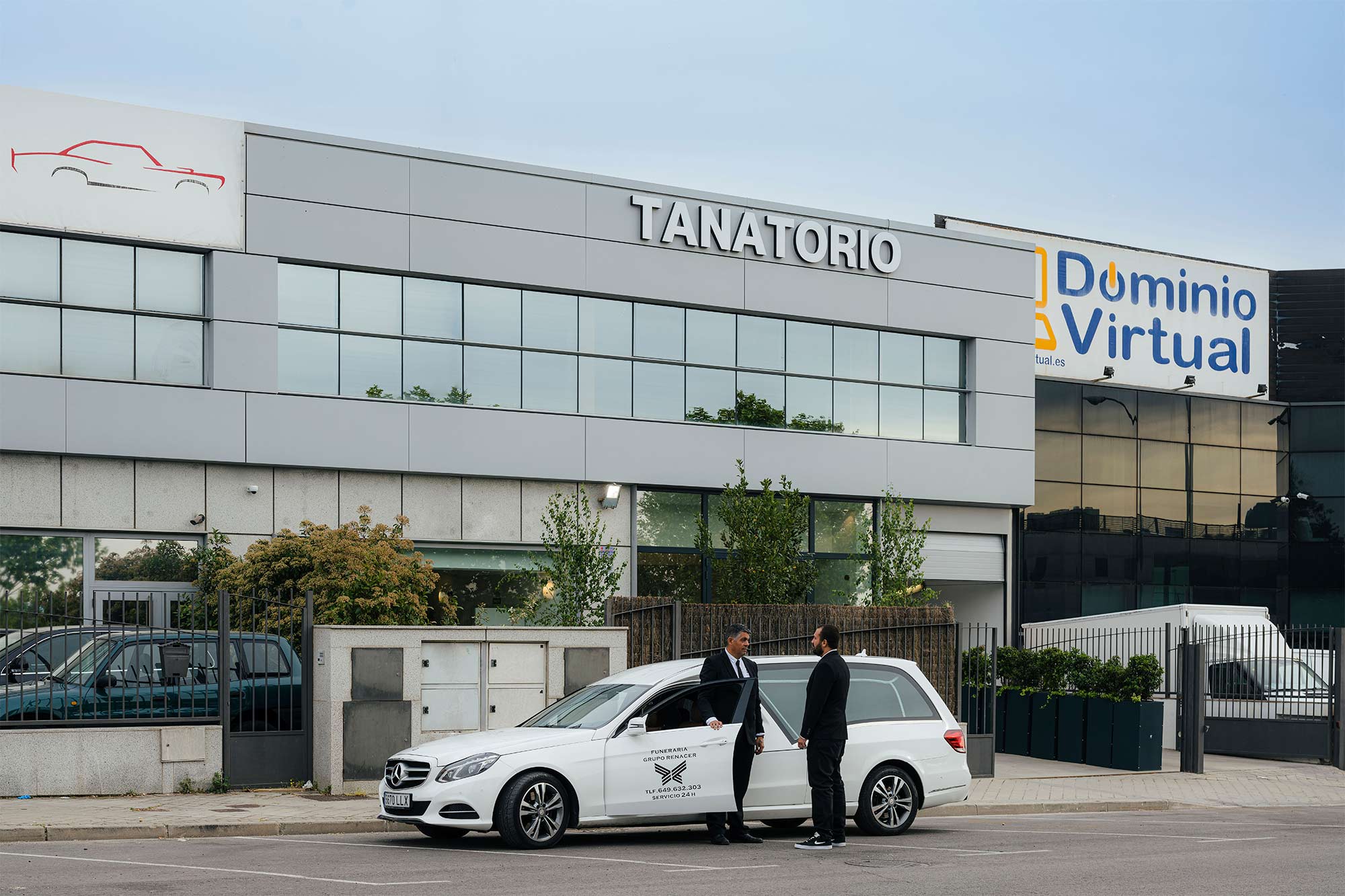 El proyecto ha consistido en la intervención de una nave de uso industrial, situada entre medianeras y dedicada a la reparación de vehículos, que se localiza en el polígono industrial de Villaviciosa de Odón (Madrid). Un contexto a priori ajeno al programa propuesto por la propiedad para su desarrollo, un tanatorio, históricamente relacionado con lugares de culto en los que predomina el sosiego y el recogimiento.